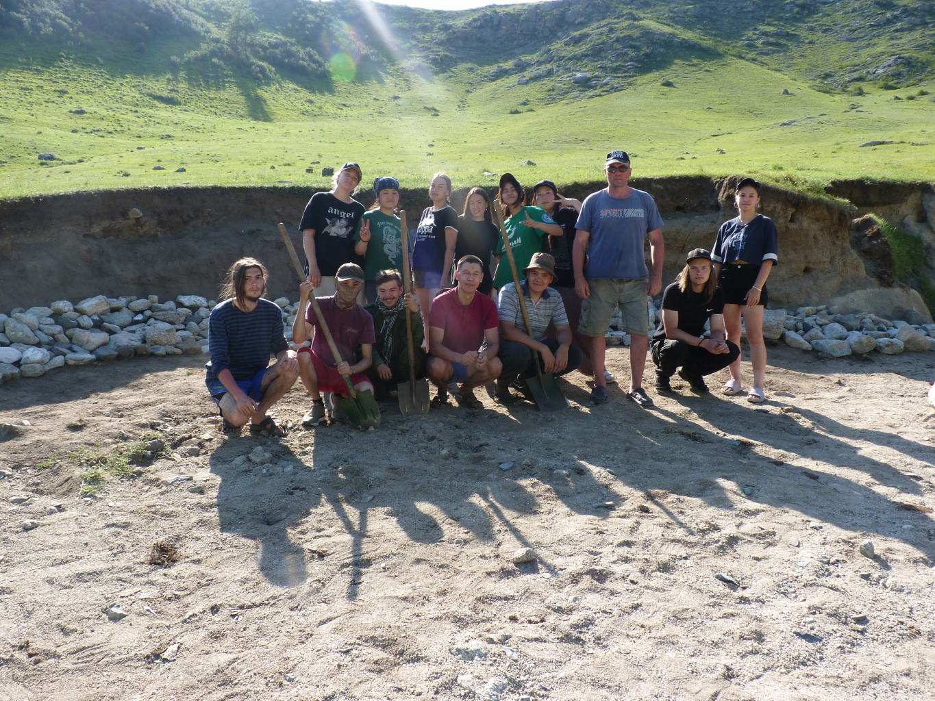 Студенты I курса 313 и 333 групп ИФФ в рамках полевой учебной практики провели археологические исследования аварийно-консервационного характера на поселениях Купчегень I и Кужулю II Онгудайского района.