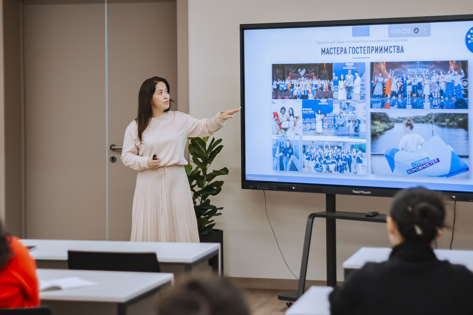 13-14 апреля в нашем университете для студентов, обучающихся по направлениям Туризм и Гостиничное дело, прошли интерактивные лекции и мастер-классы от Амалии Акоповой (эксперта по внутреннему туризму, креативного продюсера, автора проекта «Медиа Амбассадоры», журналиста и ведущей авторской программы «Дома ХОРОШО!» на радио «Москва FM»), Юлии Железняк (победителя второго сезона конкурса «Мастера гостеприимства», руководителя АНО «Мастерская гостеприимства», посла гостеприимства Удмуртской Республики), а также первого заместителя Министра экономического развития Республики Алтай Ольги Филипенковой.